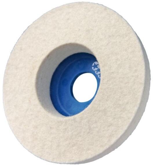 Swatycomet Felt kúpos polírozó korong ø125x16x22,2 mm. Nagy sűrűségű filckorong műanyag hordozótányérral. Alkalmas fémfelületek simítására, polírozására, tükrösítésére megfelelő simító és polírozó anyagok használata mellett